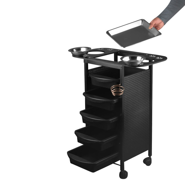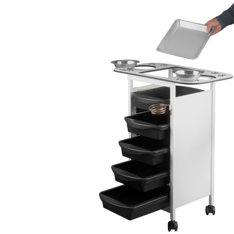 دارای ۵کشو تفکیک شده با قابلیت تقسیم ابزار در داخل کشو محلی برای قرارگیری وسایل رنگ جای سشوار و بابلیس و دیگر وسایل آرایشی