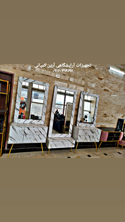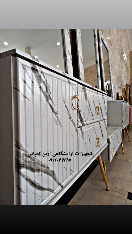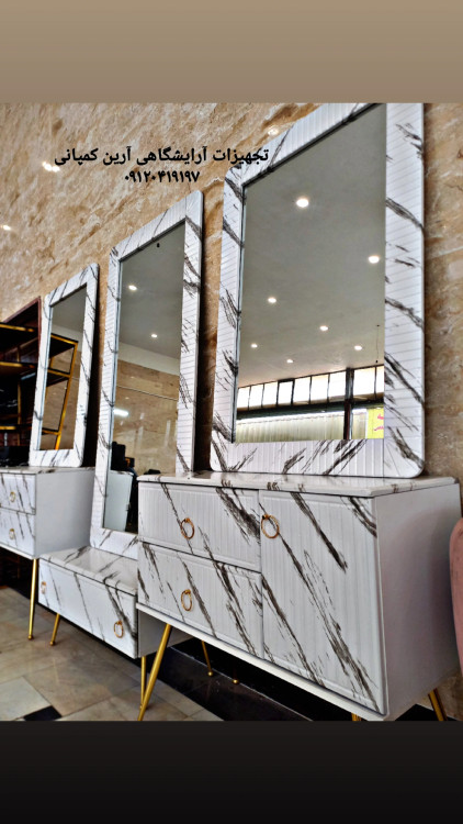 ست کامل آینه و کنسول آرایشگاهی که شامل ۳ عدد آینه و ۳ عدد کنسول با جنس ام دی اف روکش وکیوم درجه یک