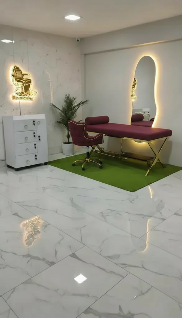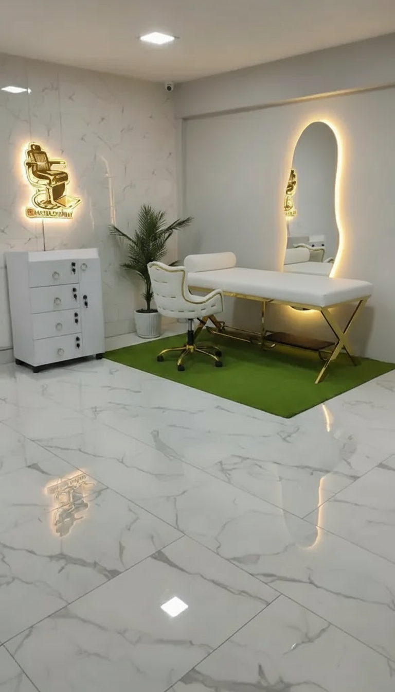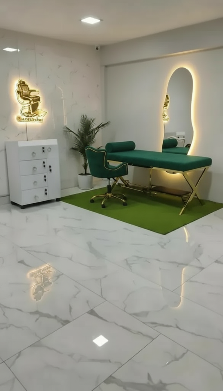 ست کامل تخت، صندلی و کشو لاکچری مشکی طلایی – مناسب سالن زیبایی