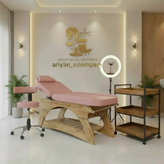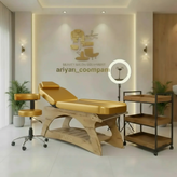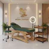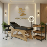 در هر تصویر، تخت کار، صندلی گردان و ترولی سه طبقه با طراحی هماهنگ آمده که برای خدمات تخصصی مژه، ابرو و مراقبتهای پوستی ایدهآل است.