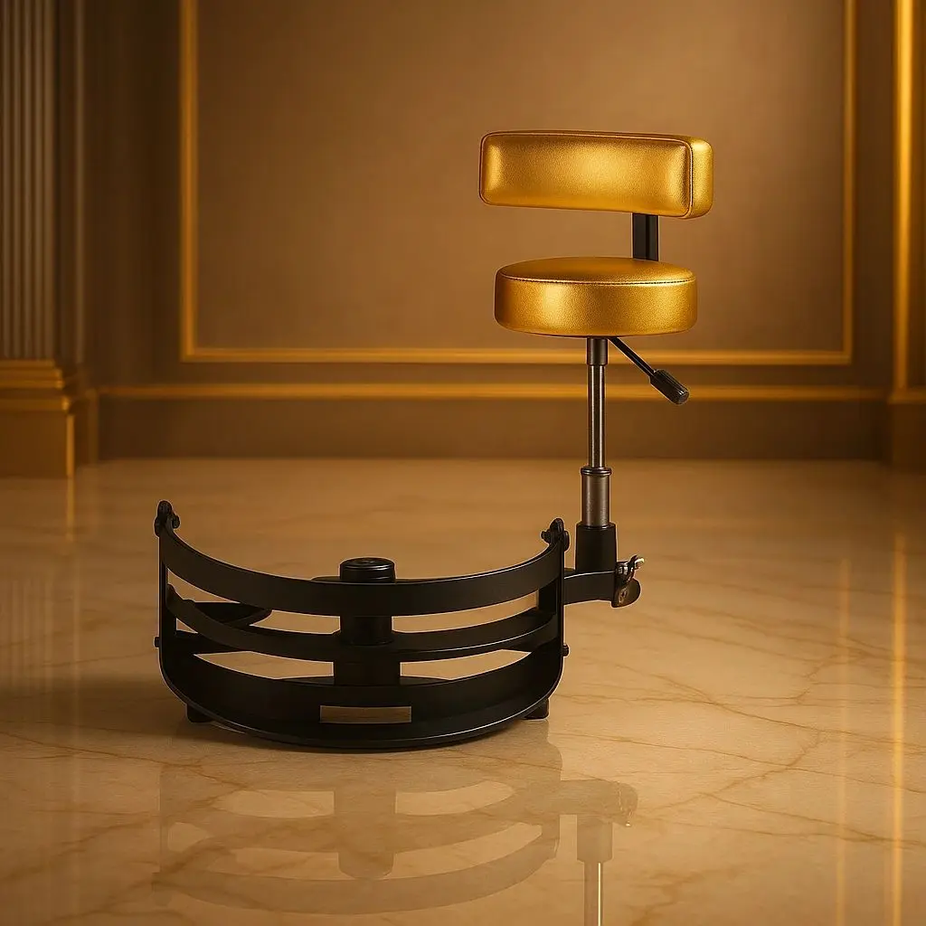 این محصول ترکیبی از **باربر حرفهای و صندلی تابوره VIP** است که ویژهی سالنهای زیبایی مدرن طراحی شده و از لحاظ ساخت، متریال و ظاهر جزو مدلهای لوکس برند **Ariyan Company** محسوب میشود.