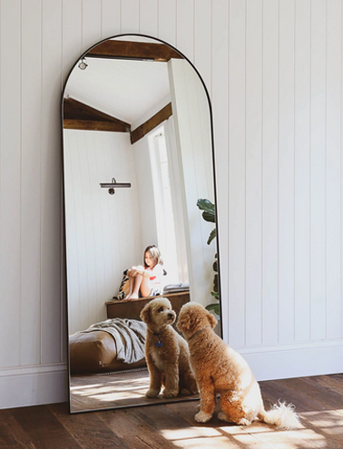 قاب با **قوس نرم در بالا** و پایین تخت، فرمی کاملاً کلاسیک و در عین حال ساده دارد؛ به آن آینه “arches” یا “arched full-length mirror” گفته میشود.