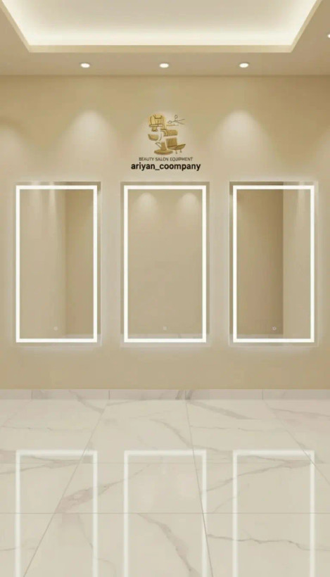آینهای که در تصویر مشاهده میشود، یکی از مدلهای مدرن **آینه LED سالنی** شرکت **Ariyan Company** است؛ طراحی آن بر پایه مینیمالیسم و لوکس بودن انجام شده و برای فضاهای زیبایی، آرایشگاهها و سالنهایلاکچری کاربرد دارد. در ادامه جزئیات دقیق فنی و طراحی این آینه را آوردهام 👇