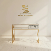2. **فریم طلایی بُرسخورده + صفحه مرمر سفید + بدنه سفید:**