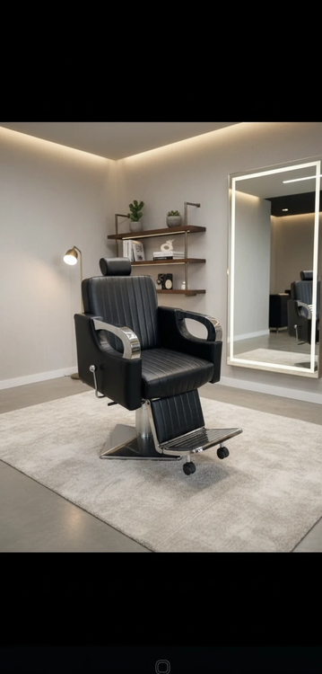 این محصول یک **صندلی حرفهای آرایشگاهی / اصلاح (Barber Chair)** با طراحی مدرن و لوکس است.