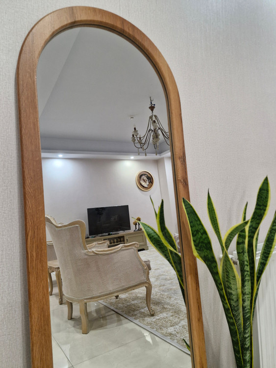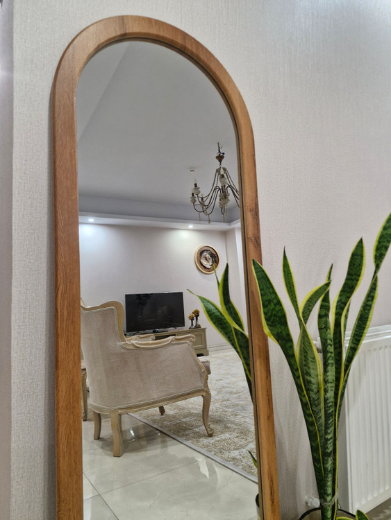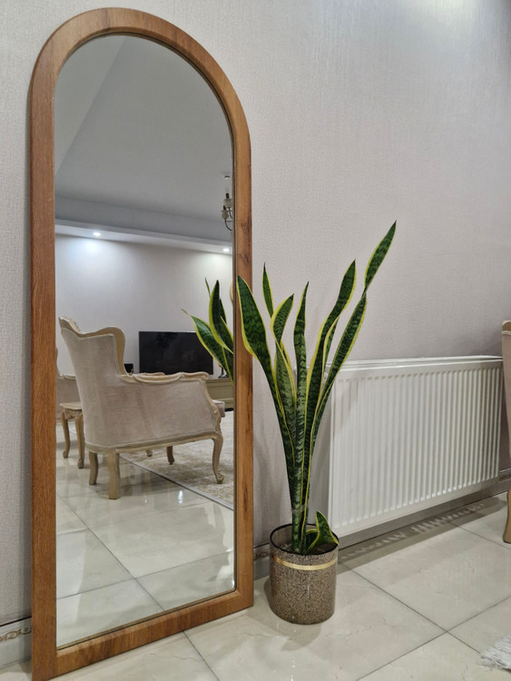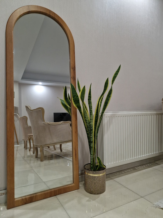 این آینه قدی شیک با طراحی آرشیدال (قوسدار در قسمت بالایی)، یکی از ترندهای محبوب در دکوراسیون داخلی مدرن و مینیمال است و زیبایی خاصی به فضای شما میبخشد.