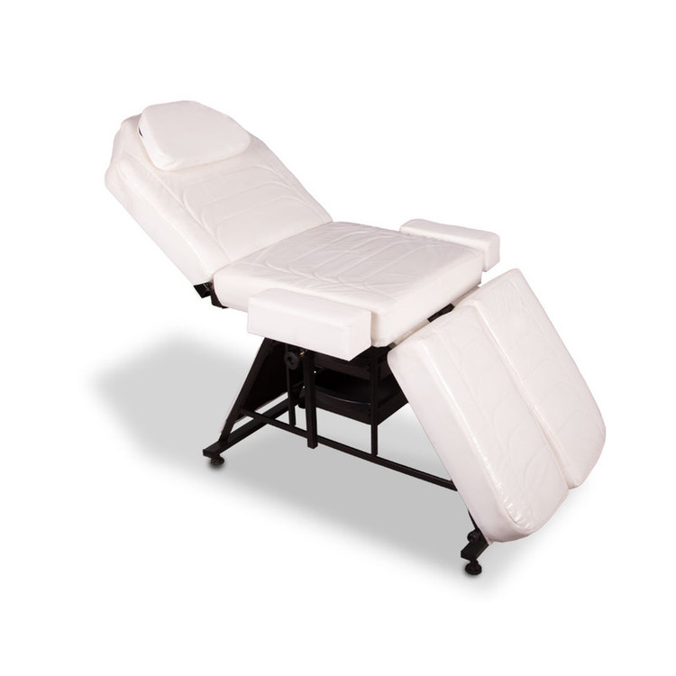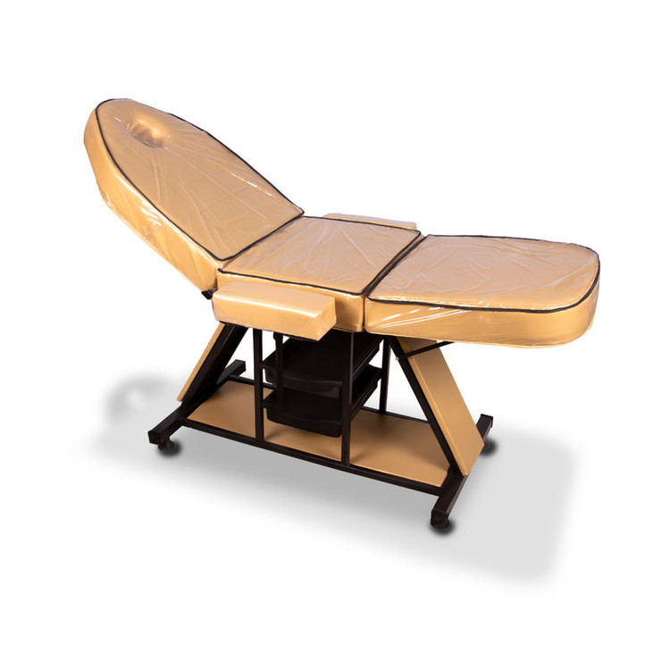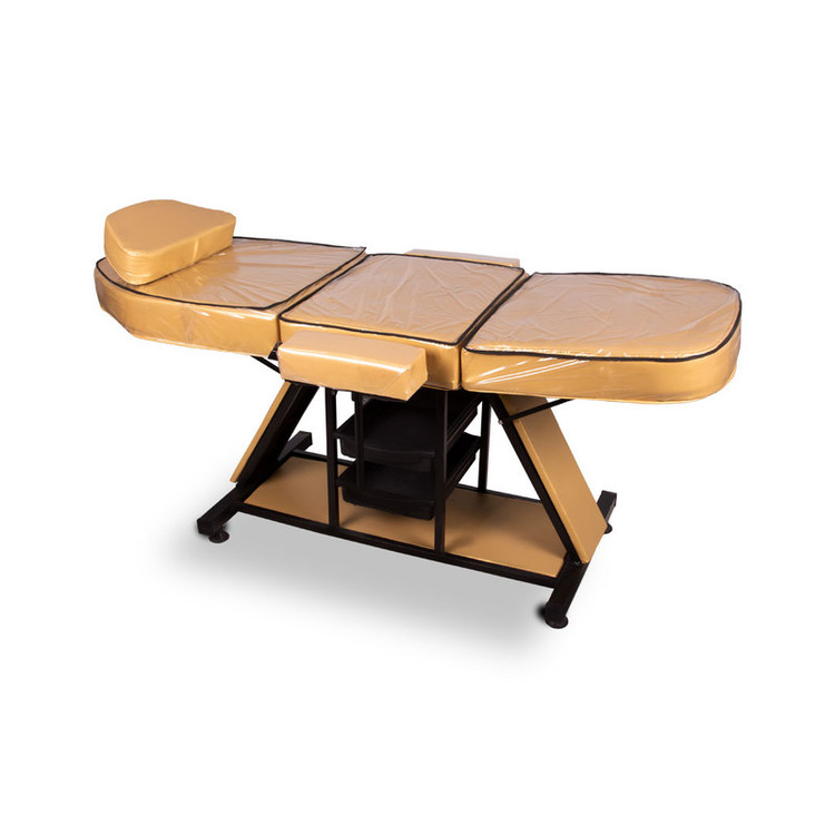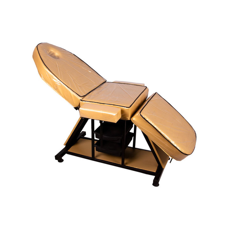 تخت ماساژ یک سطح برجسته است که توسط درمانگران برای ماساژ مراجعه کنندگان استفاده میشود. ممکن است به صورت دستی، یا برقی، ثابت، متحرک و یا قابل تنظیم باشد. برخی از تختهای ماساژ چند منظوره هستند و ممکن است برای خدمات دیگری غیر از ماساژ؛ در اسپا و سالنها استفاده شوند. آنها همچنین در مراکز طب سوزنی، فیزیوتراپیستها، کلینیکهای درمانی و کلینیکهای زیبایی قابلی استفاده میباشند. در ساخت پایه ها و بدنه ی تخت ماساژ سه تیکه، آهن به کار می رود که چون از استقامت بالایی برخوردار است قابلیت تحمل وزن بالایی به آن می بخشد. در لایه های میانی تشک، فوم سرد مرغوب به کار رفته که زیبایی ظاهری محصول را در بلند مدت حفظ می کند. به کار گیری چرم پارچه ی اصل به عنوان روکش محصول از ویژگی های مثبت آن شمرده می شود. این محصول در سه رنگ سفید ، مشکی ، طلایی تولید می شود.
