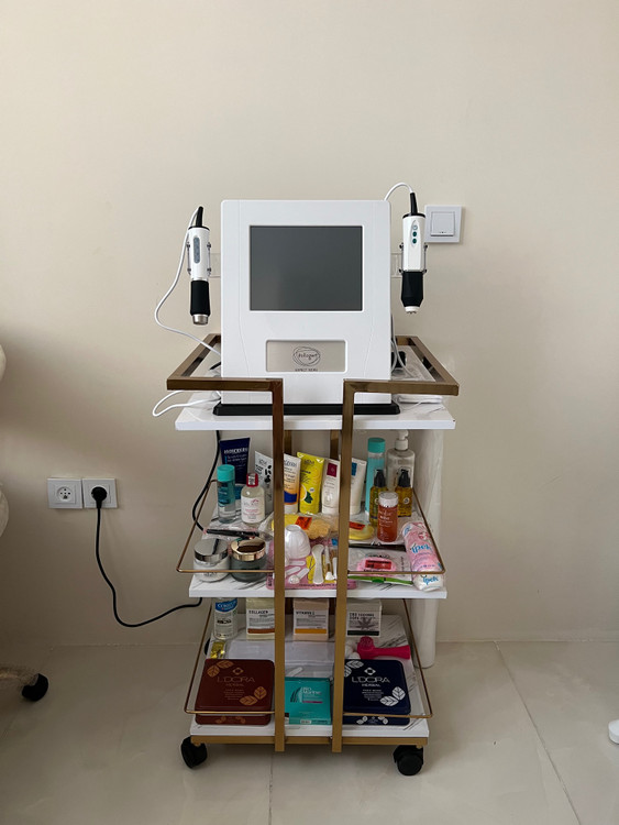 ترولی فورتیک پزشکی ساخته شده از بدنه فلزی ابکاری فورتیک جنس ورق ام دی اف روکش هایگلاس دارای چرخهای طرح ژله ای برای جابجایی راحتر قابل استفاده در سالنهای زیبایی